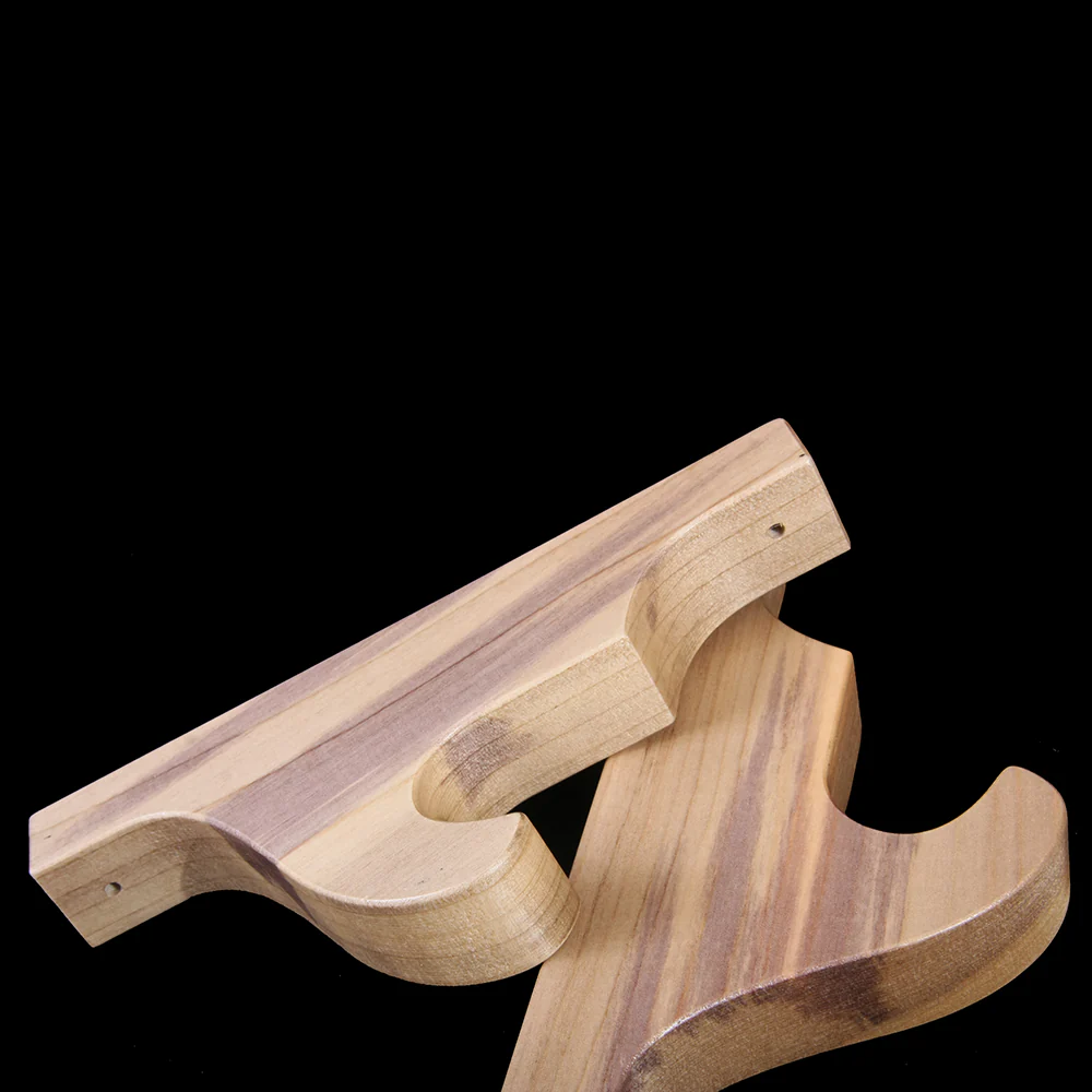 This wall-mounted sword rack is crafted by Akamu Woodworks using magnolia (ho) wood — the same material traditionally used for Japanese sword handles. Its natural compatibility with Japanese-made swords makes it an exceptional choice for displaying your treasured blade.
