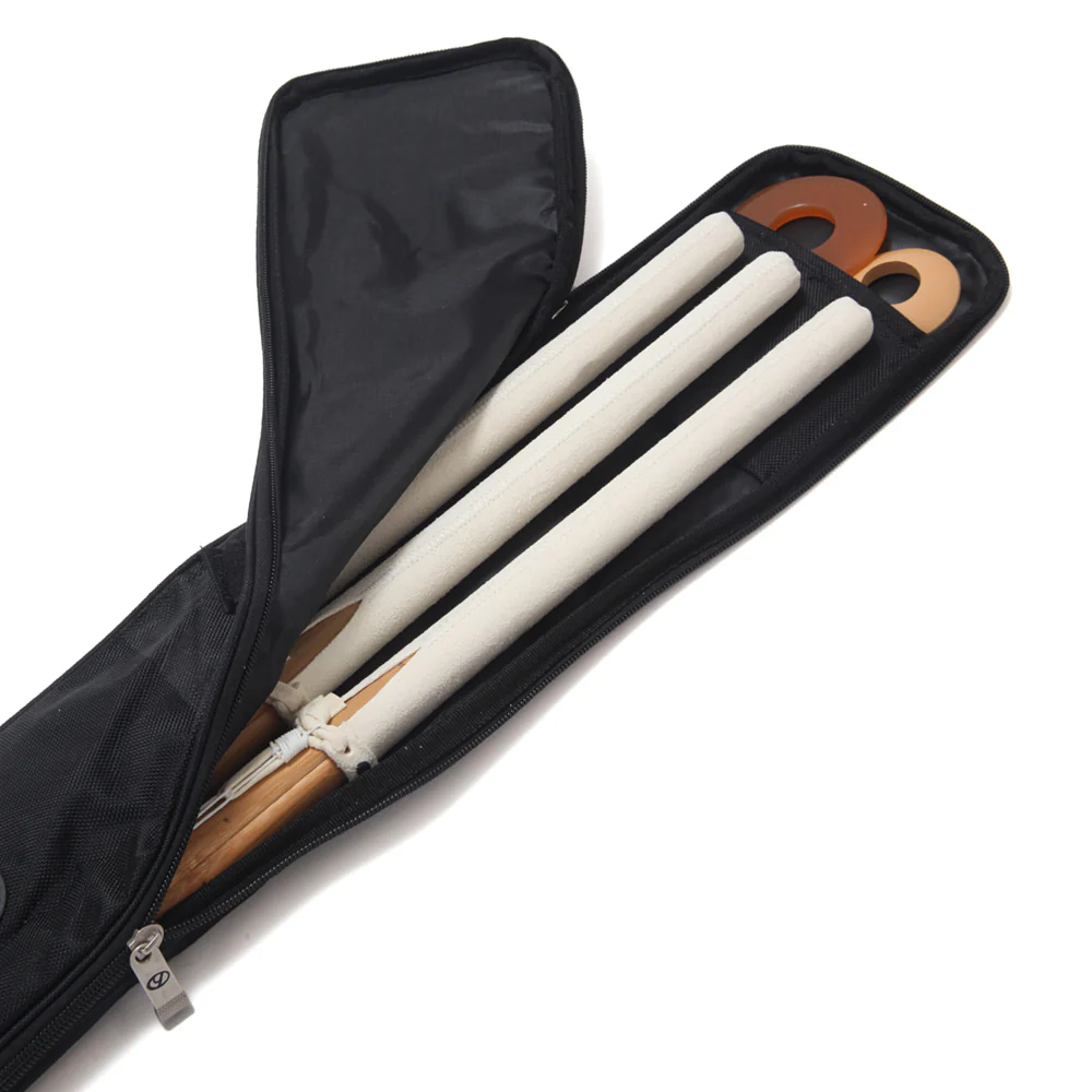 This shinai bag is an extremely practical and basic style, emphasizing durability during travel and ease of use. It holds up to 3 shinai and comes with an external pocket for accessories like tsuba and tsubadome.