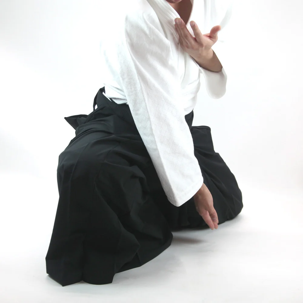This Aikido Hakama also features Aikido-specific enhancements, such as a raised front hem, seven lines of stitching on the obi, and a soft Koshi-ita for Ukemi. The obi includes an inner core for improved tying and hold, enhancing performance during Keiko. The inner pleats are also sewn to help keep those crisp lines.